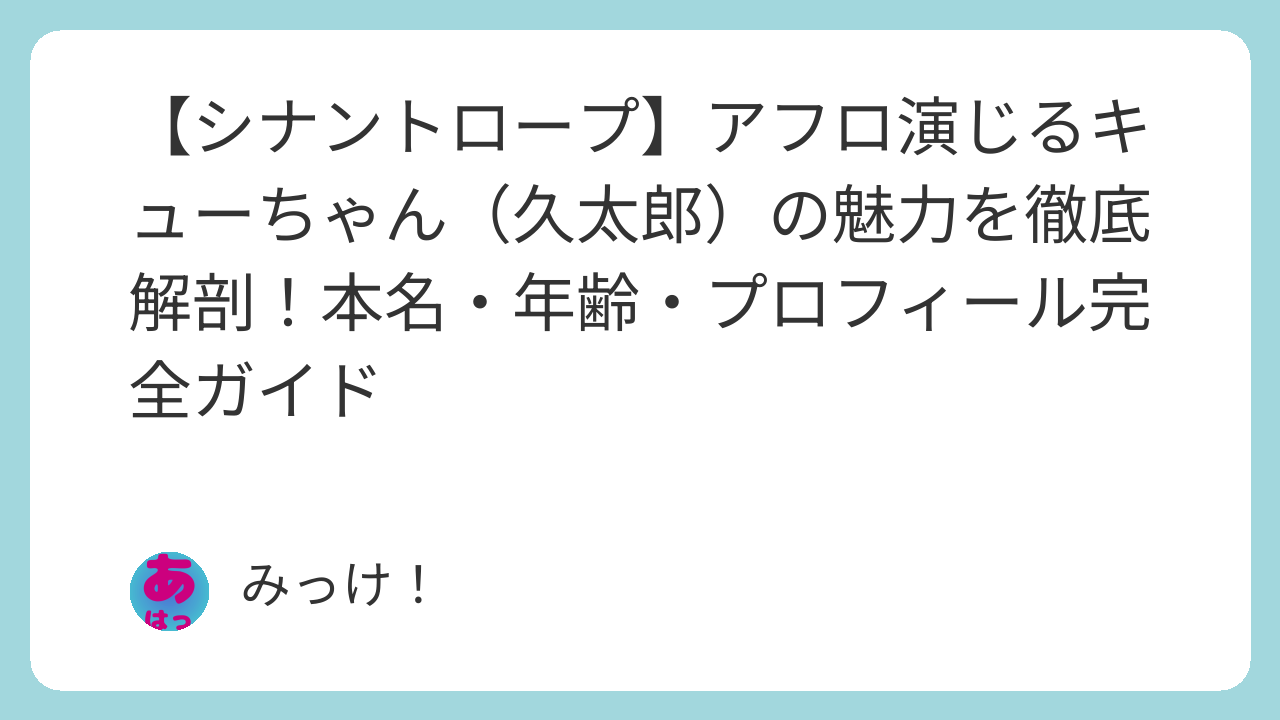 「シナントロープ」でのキューちゃんの今後の展開も含めて、アフロさんの多面的な才能にぜひ注目してみてください。