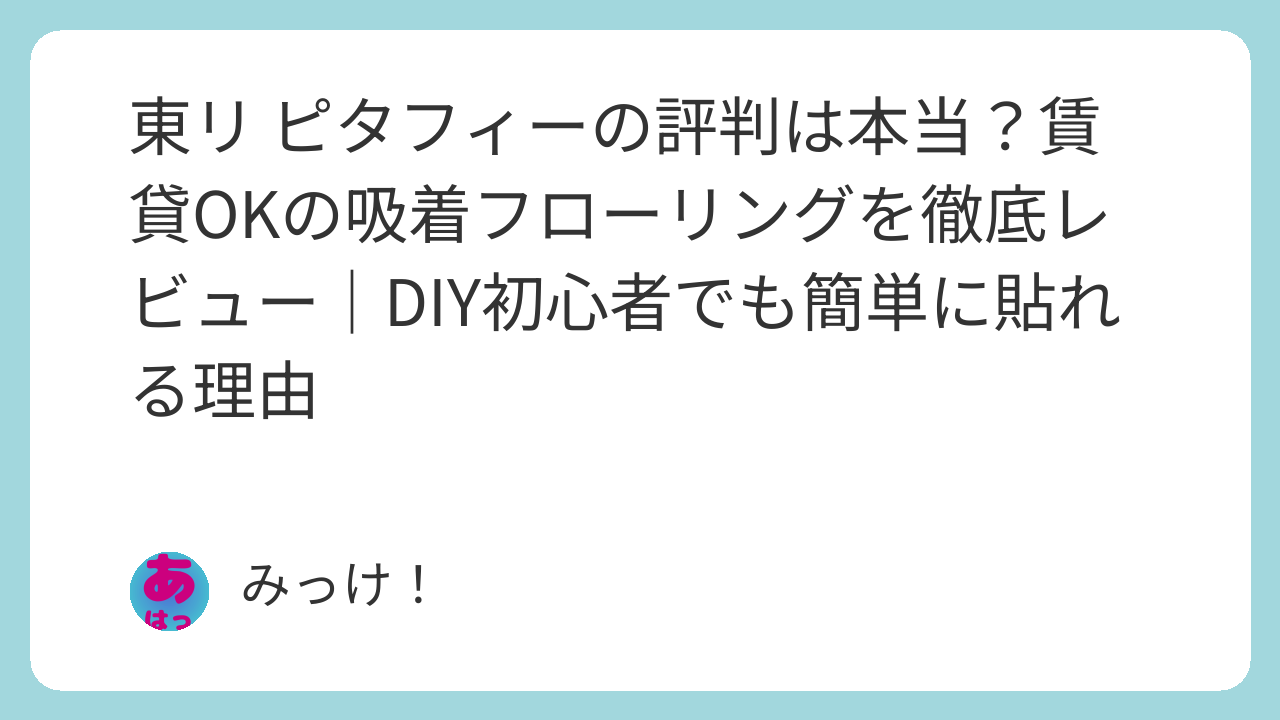 まとめ:東リ ピタフィーは賃貸DIYに最適な床材