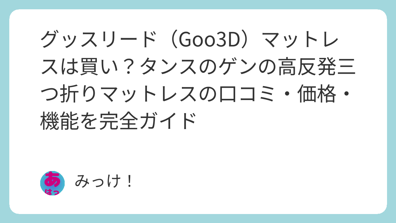 この記事では、グッスリード(Goo3D)マットレスの実際の口コミ・スペック・価格情報を徹底調査。購入を迷っている方が知りたい情報を、わかりやすくまとめました。